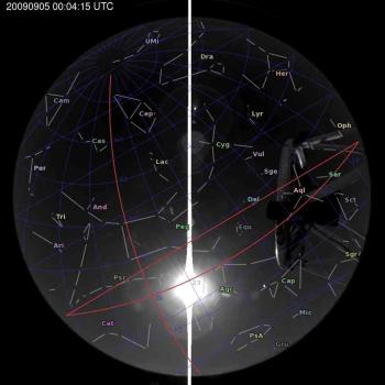 Annotated all-sky camera image from La Palma observatory taken on 2009-09-05 at 00:04:15 UT