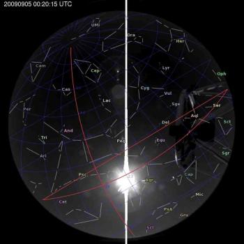 Annotated all-sky camera image from La Palma observatory taken on 2009-09-05 at 00:20:15 UT