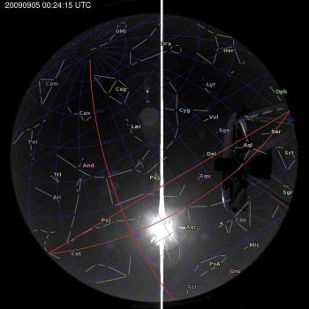 Annotated all-sky camera image from La Palma observatory taken on 2009-09-05 at 00:24:15 UT