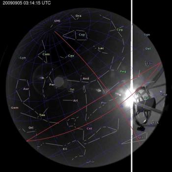 Annotated all-sky camera image from La Palma observatory taken on 2009-09-05 at 03:14:15 UT