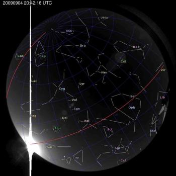 Annotated all-sky camera image from La Palma observatory taken on 2009-09-04 at 20:42:16 UT