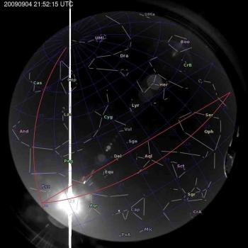 Annotated all-sky camera image from La Palma observatory taken on 2009-09-04 at 21:52:15 UT