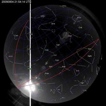 Annotated all-sky camera image from La Palma observatory taken on 2009-09-04 at 21:54:14 UT