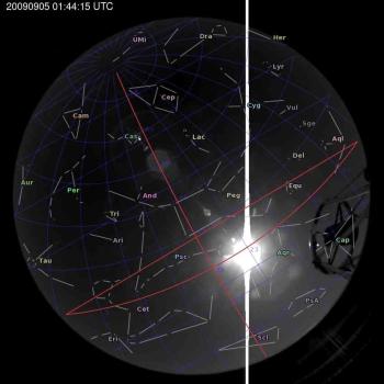 Annotated all-sky camera image from La Palma observatory taken on 2009-09-05 at 01:44:15 UT