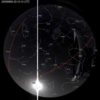 Annotated all-sky camera image from La Palma observatory taken on 2009-08-06 at 23:10:14 UT