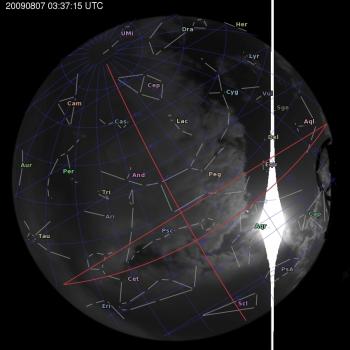 Annotated all-sky camera image from La Palma observatory taken on 2009-08-07 at 03:37:15 UT