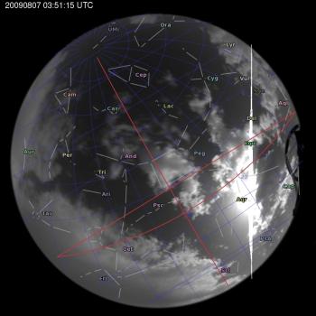 Annotated all-sky camera image from La Palma observatory taken on 2009-08-07 at 03:51:15 UT