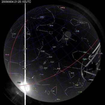 Annotated all-sky camera image from La Palma observatory taken on 2009-09-04 at 21:25:15 UT