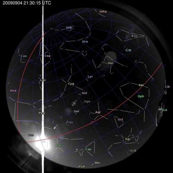 Annotated all-sky camera image from La Palma observatory taken on 2009-09-04 at 21:30:15 UT