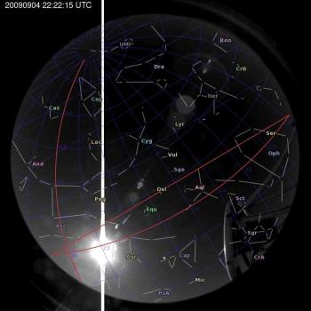 Annotated all-sky camera image from La Palma observatory taken on 2009-09-04 at 22:22:15 UT