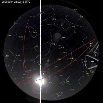 Annotated all-sky camera image from La Palma observatory taken on 2009-09-04 at 23:02:15 UT