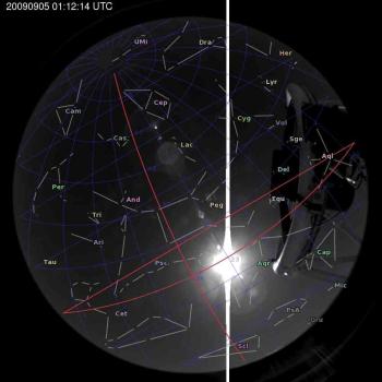 Annotated all-sky camera image from La Palma observatory taken on 2009-09-05 at 01:12:14 UT