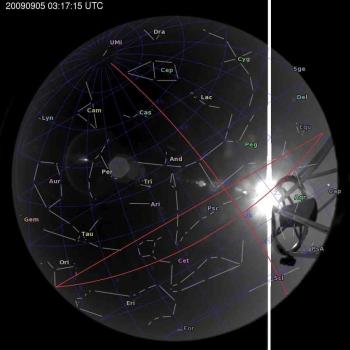 Annotated all-sky camera image from La Palma observatory taken on 2009-09-05 at 03:17:15 UT